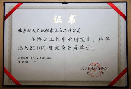 航天石化榮獲2010年度北京企業(yè)評(píng)價(jià)協(xié)會(huì)優(yōu)秀會(huì)員